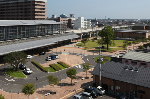 日向市駅の周辺は、区画整理事業が掛けられて街区の抜本的な再編が図られた。