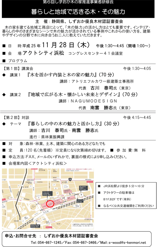 第6回しずおか木の家推進事業者研修会 「暮らしと地域で活きる木・その魅力」 |